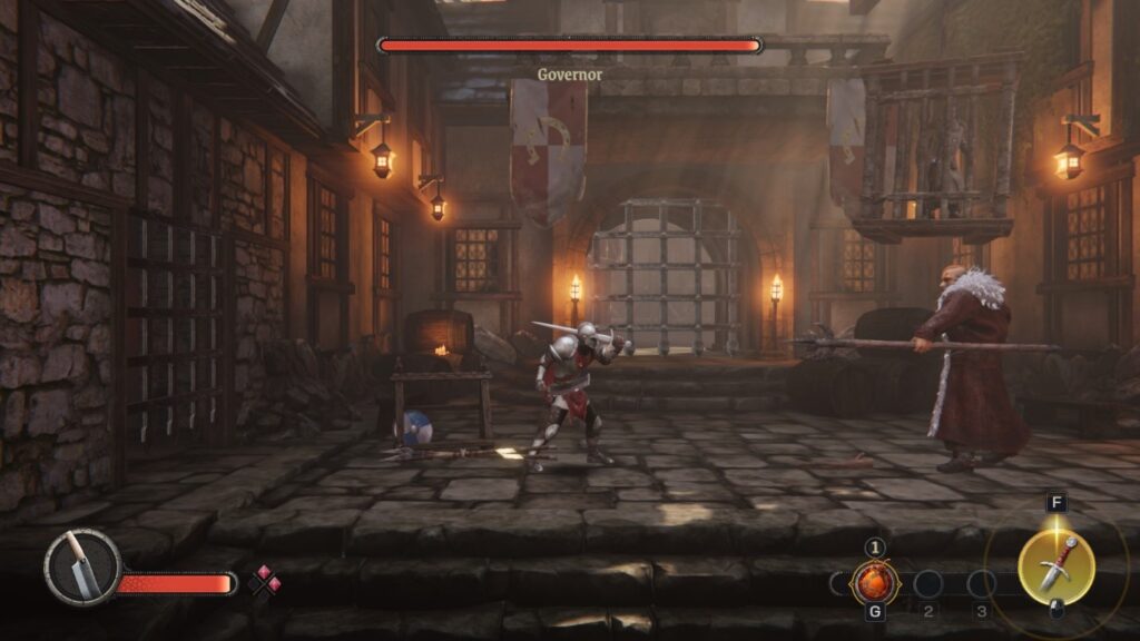 The game doesn’t waste any time with lore dumps, which I appreciated. I stepped into the stone boots of a knight whose beloved had just been snatched by an evil sorcerer. To add insult to injury, the sorcerer’s curse was now turning me to stone. This curse is the game’s big hook: my health was constantly draining, this stony petrification creeping over my body. It’s a race against time where my own body is the clock—a classic setup, and honestly, it works.