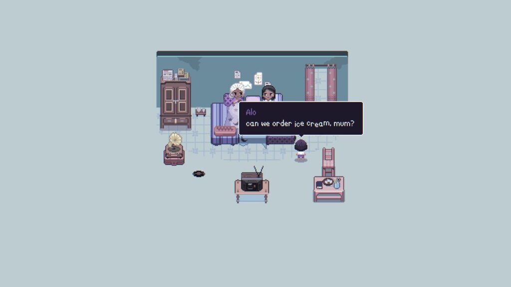 There is a lot to adore inside the game. Using pixel art and making it feel so real to life, which almost feels unreal. There is depth in writing, and the character building will make you feel attached to all the side characters Aloo talks to. The cozy apartment has much to explore, and as you go later in the game, you unlock even more things to do and see. Aloo’s childhood memories almost feel like GBA Pokémon games and hit right at home with perfectly executed background scores inside the game. Fishbowl really hits the feel with its design and writing.