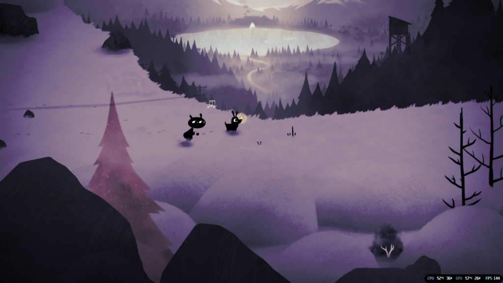 The stealth segments are where the stakes go up a bit. Hunters and their dogs appear midway through the game, and sneaking past them can be genuinely nerve-wracking, especially when the puppy gets nervous and threatens to bark. It’s a clever mechanic that adds tension without needing traditional enemies or weapons. Every time we made it through one of those areas, I felt a mix of relief and pride. Not because I “beat” something but because I kept the puppy safe.