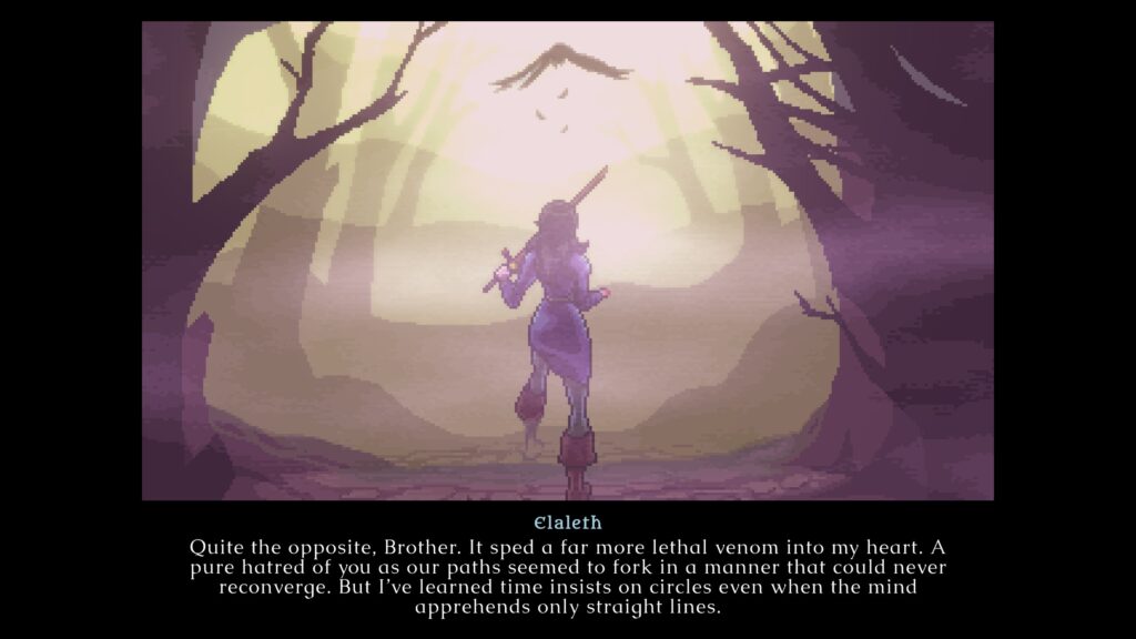 The story is the most problematic element of Ascendance. The only difference it has from the graphic novel is that they changed the order of some of the events. For example, the game picks up with Elaleth on the hunt for her Raziel before he turned into a vampire, whereas in the graphic novel, this scenario was explained as a flashback towards the end. The game even uses the same dialogue from the comic, with some scenes being expanded slightly while some get the opposite treatment. Similar to the comic, the perspective shifts between Elaleth, pre-vampire Raziel, vampire Raziel, and Kain as it tries its best to convince you with the changes to the canon as well as trying to establish Elaleth as an important player in the series moving forward. It didn’t work in the graphic novel and doesn’t work here.