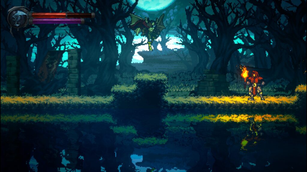 One aspect the developers emphasized in pre-release marketing was the return of original voice actors Michael Bell, Simon Templeman, Richard Doyle, and Anna Gunn, lending their voices. Yeah, that is cool. It’s a shame that these great voices are given such poor material to work with. It’s also worth noting that the voices do not sound the same, especially Michael Bell as Raziel. It’s been more than 25 years since they last played these characters, and that is to be expected. Still, it was nice to hear the old cast again, and they genuinely sound excited at the prospect. Ascendance also features an original score by the rock band Celldweller, and they did their part just fine. The pixel art graphics can look quite good at times too, especially the vibrant lighting and pseudo-reflections. Sadly, most of the levels are just unremarkable.