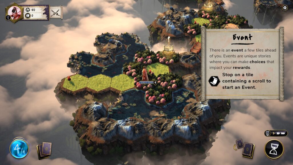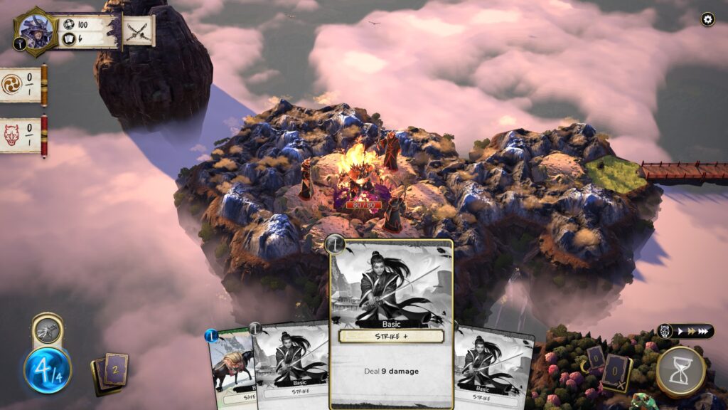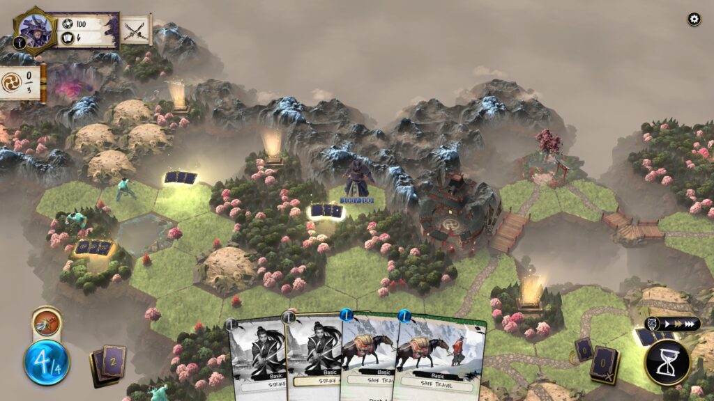 So again, tactics are involved: should you explore the whole map or just follow the objectives and side challenges? As, in addition to cards, many upgrade shrines are scattered throughout where you can meditate to increase your strength, defense, base health and energy etc. And you’re likely to miss any potential upgrades for your character if you only go for completing the objectives. However, mind you! The more time you spend on a map, the harder it gets, especially if there are summoning pools present!