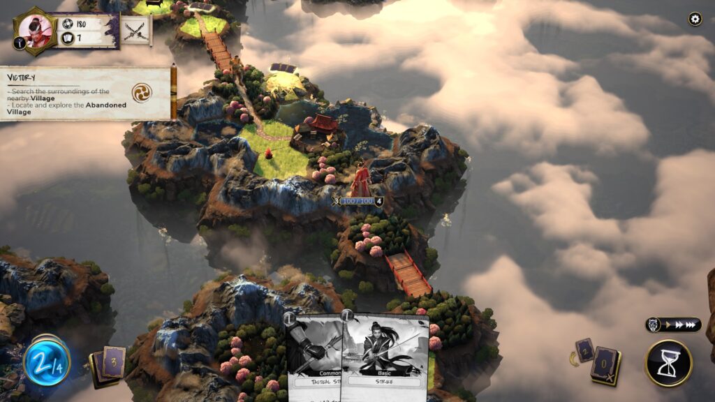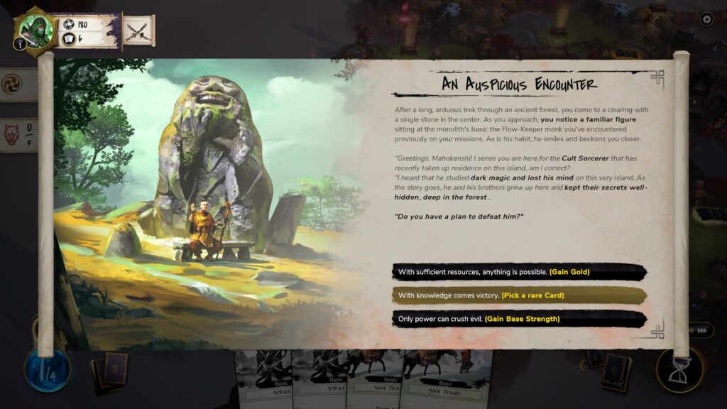 Throughout the map, you’ll find cards, powerful ones even, but they require you to explore the whole map. And so far, I’ve played, almost all the missions are in a state of urgency. Like there’s a cultist leader razing down villages, and you’ve stopped him before he destroys 5 of them, then there are goblin summoning pits, and you’ve to close them as soon as possible else the map’s going to be crowded with nasty goblins, and all.