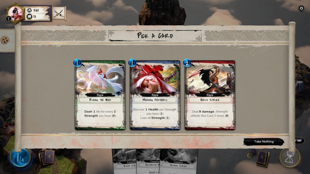 Treasure chests are scattered across the map, and you also get gold from defeating enemies, and you’ll need them to buy or upgrade your best cards at the market and Dojo respectively.