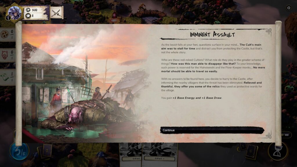 Overall, Mahokenshi is a great deckbuilding strategy game with easy to grasp gameplay, decent enough plot and beautiful artworks. The cards are varied enough to keep the ball rolling―the more time you spend on the map, the more powerful cards you get with challenging enemies. I would see, Mahokenshi might be a good stress inducer rather than a buster, as you’ll have to think carefully at every step. That said, prepare to die a lot!