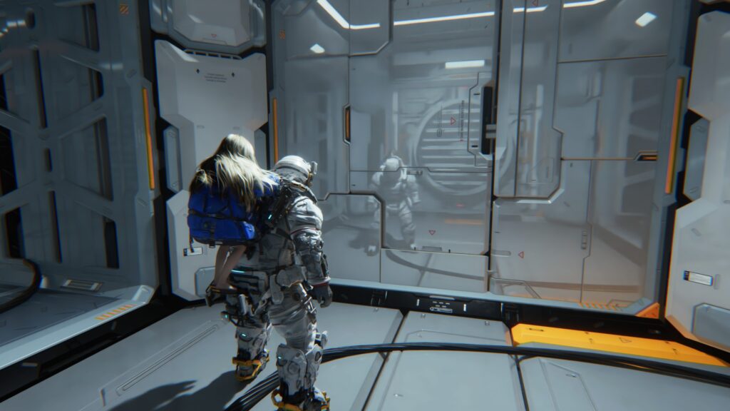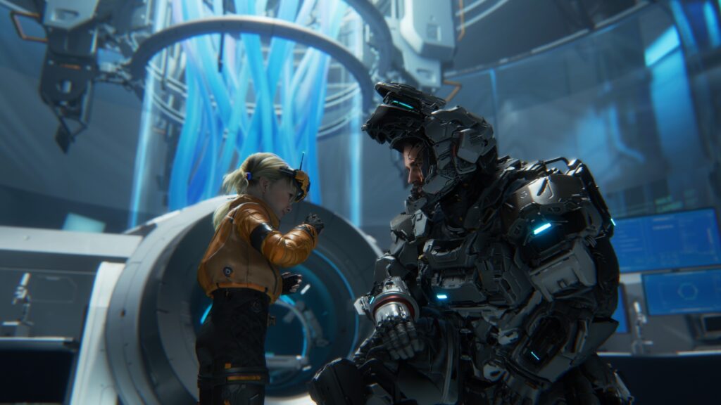 On my desktop with an RTX 5070, I was running between 110 and 144 fps in High RT mode at 1440p, and the game is absolutely gorgeous at those numbers. The lunar interiors have a precise, clinical beauty to them. Diana’s facial animations during emotional beats — genuinely impressive, cutscene-quality stuff during gameplay itself — hold up under close scrutiny in a way that few games manage.