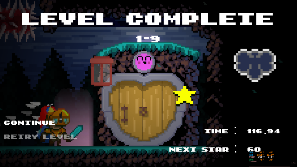 The visual style of Stolen Hearts: Wolf Knight is both charming and functional. The game’s art, reminiscent of classic 2D platformers, features vibrant colors and detailed environments. Characters and enemies are well-animated, contributing to the overall polish of the game. Each level has a distinct visual theme, keeping the experience fresh and engaging as players progress through different areas.