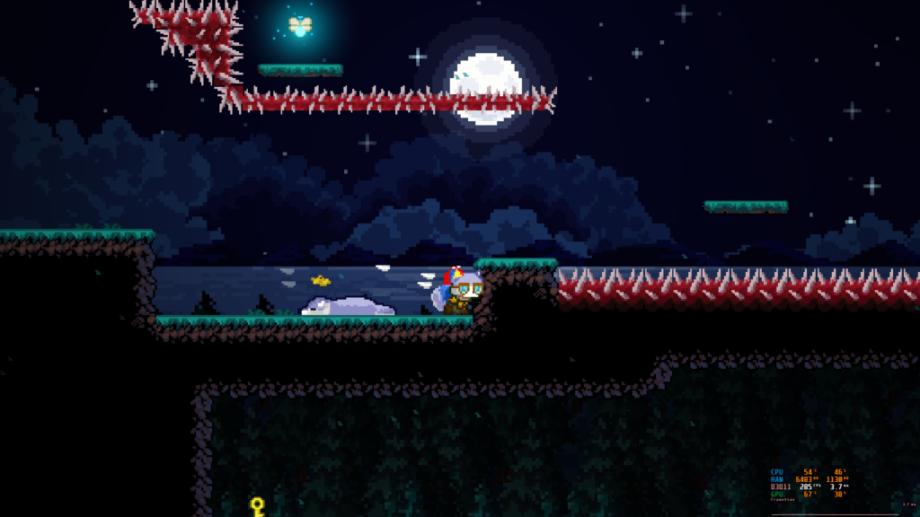 The game introduces a range of mechanics that add depth to the platforming experience. Players must not only master basic movements but also adapt to various in-game elements like moving platforms, spikes, and enemy patterns. The game’s learning curve is steep but fair, offering a sense of progression as players refine their skills and learn from their mistakes.