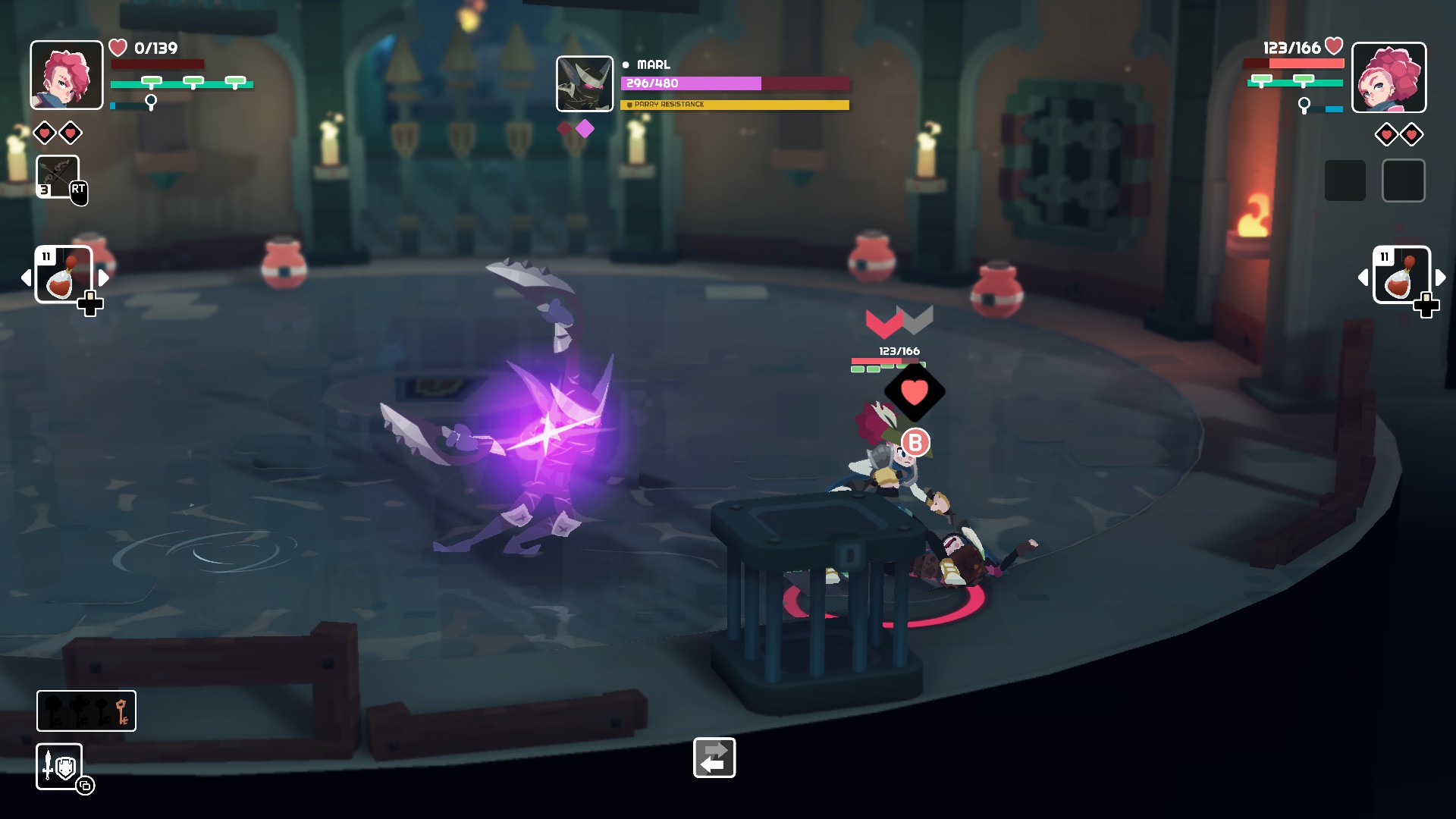 Game also features various cosmetics customization which can be bought in the shop in the town to change the look of protagonists. On paper art style of Young Souls may look like quite generic but variety in enemies and boss fights really surprised me sometimes.